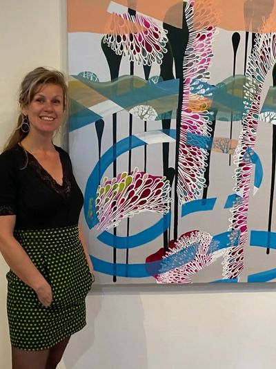 There I am, sitting in my gallery. Glamping with my art on a parking lot. Makes me think of one of my art teachers from The Netherlands; 'Put your art out on the side walks, show it, it doesn't matter where, just do it' (thank you Kees Slegt). I'm doing it.
